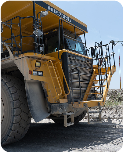 公共工事・民間工事の受注及び石灰石・ドロマイト・砕石・砂利等の鉱産物及び土質用石灰等の加工品、燃料の販売、産業廃棄物の収集運搬の受注を行っています。